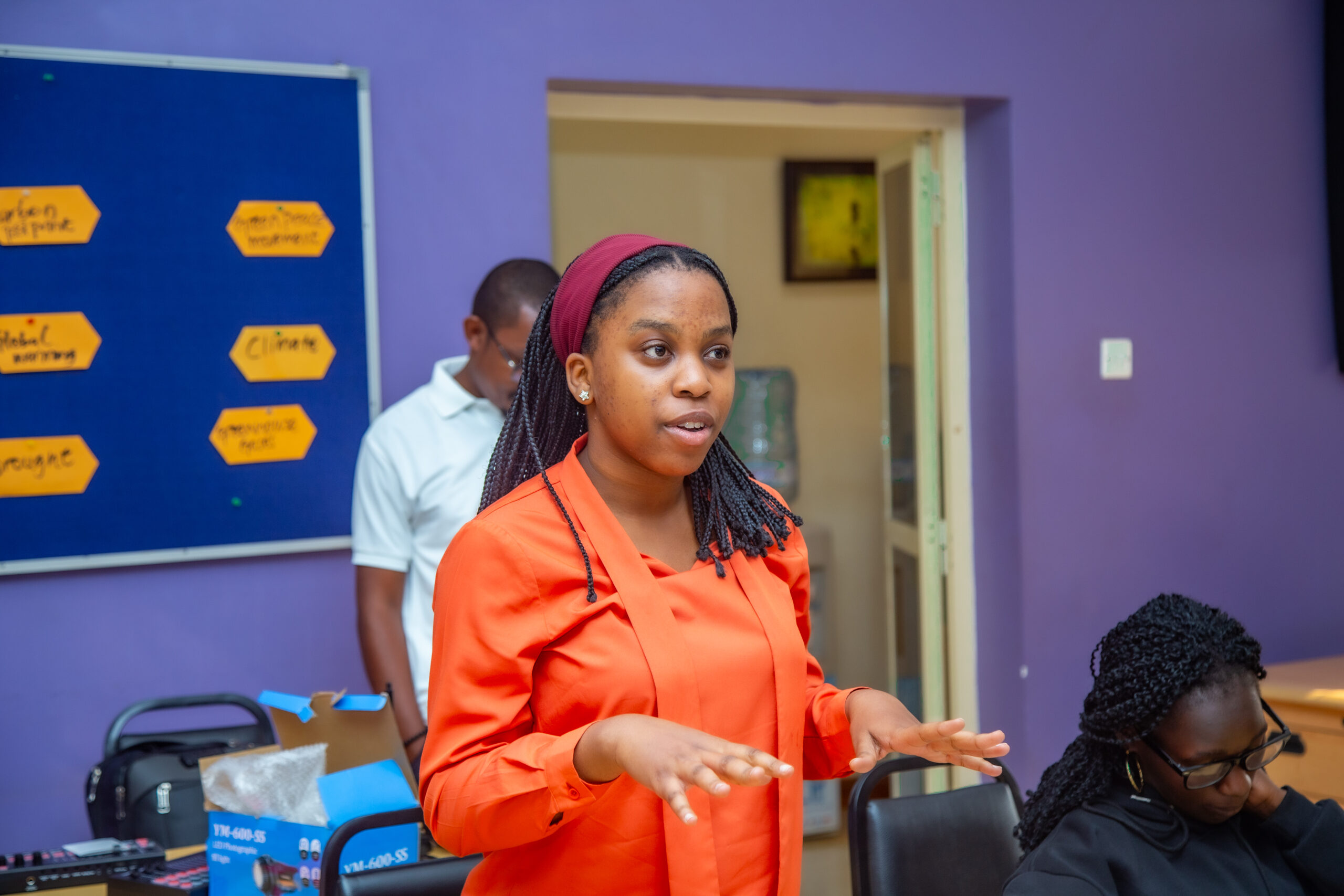 Hedwig Arinaitwe facilitates the session on the use of AI tools in climate storytelling